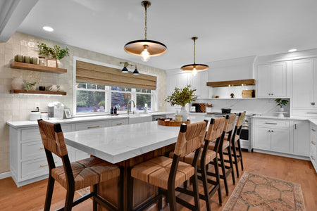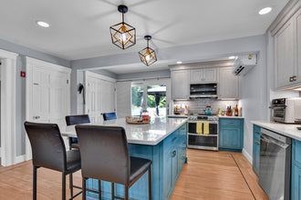 Add a splash–of color or whimsy–with Shaker-style cabinets, a contrasting island, even a sliding barn door!