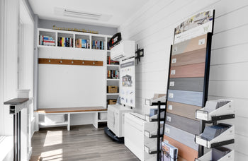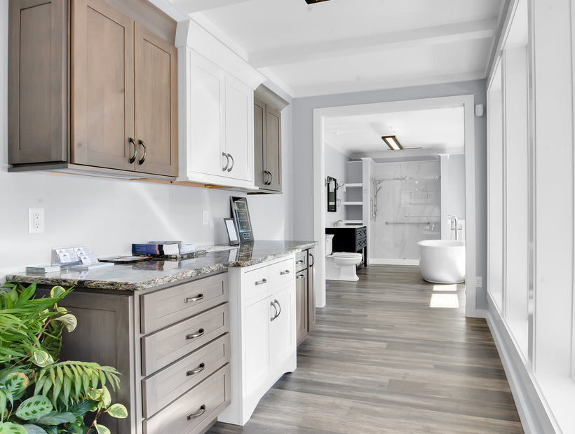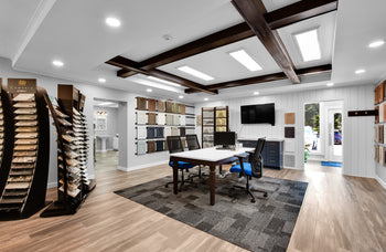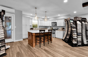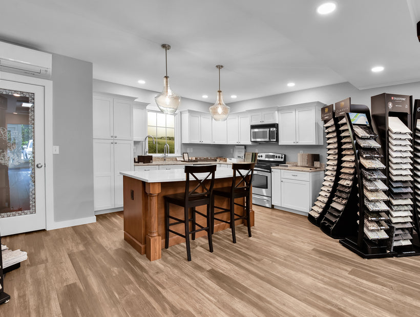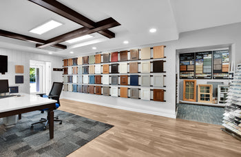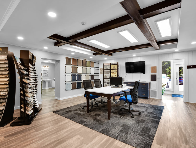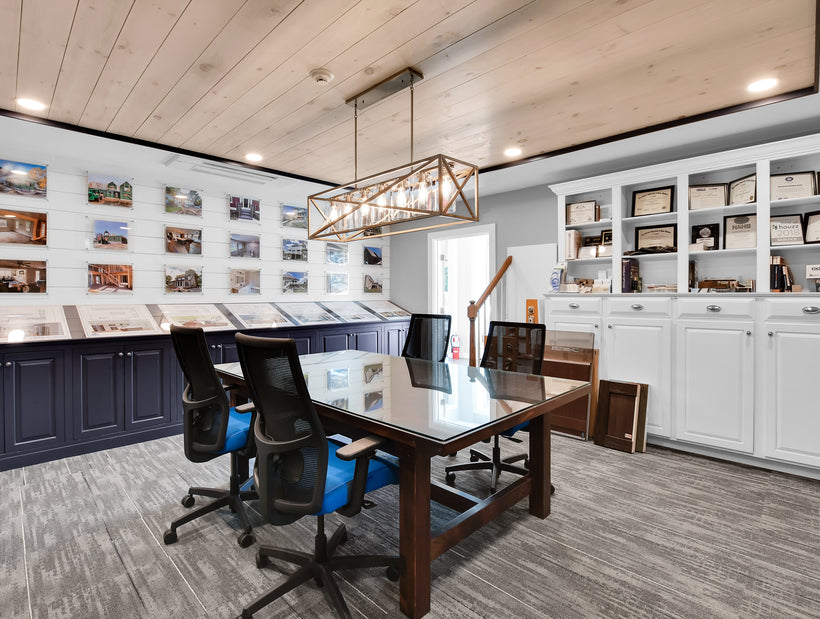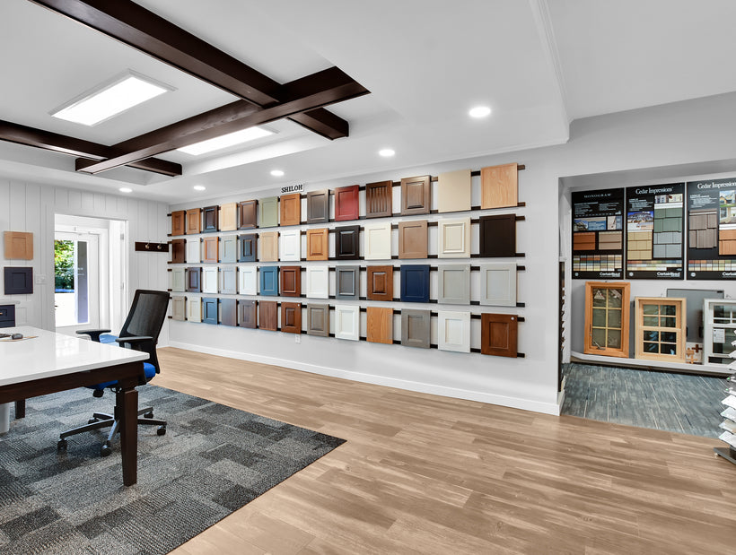 Visit our offices today and get inspired for your next home project in our Custom Design Showroom! Our Design Showroom features kitchen cabinets, bathroom vanities, bathroom and kitchen fixtures, bath accessories, cabinet and door hardware, siding, flooring, countertops, trim, decking, roofing, and windows to name a few of our displays. The Design Showroom is where we meet to review your design, discuss budget, and finalize the project contract. During these meetings you will have the opportunity to physically touch and see many of the items that will be going into your home, addition, or renovation. Having so many items in one location will aid you during the selections/decisions process. Give us a call today to schedule a visit.